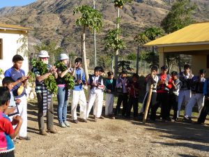 b) Kanchay betreit Internater um Héichplato vun den Anden wäit weg vun de grousse Stiedt. D’Internater goufen niewent der Zentralschoul gebaut. An dësen Internater wunnen d’Kanner aus den Dierfer ronderëm. Mee ronderëm ass relativ: dës Kanner missten all Dag zu Fouss tëschent 1 a 4 Stonnen moies dohinner- an owes zréckgoen, fir an d’Schoul ze kommen. Dank den Internater kënnen si lo no bei der Schoul wunnen a brauchen de laange Wee just de Weekend ze maachen. Si ginn ausserdem och nach bei hirer Schoulaarbecht ënnerstëtzt a si léieren Planzen op eng ökologesch Aart a Weis ze zillen. Beim Internat zillen se och Hénger, Mierschwéngercher, Kanéngercher, Schwäin fir hiren eegene Bedarf. D’Kanner an d’Jugendlech kréien also eng integral Ausbildung, déi si och herno an hierem Liewen an hieren Dierfer virubréngt.